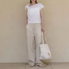 These linen trousers are perfect for spring and summer, especially on days when you want to feel relaxed but still look pulled together. Wear them for leisurely walks, weekend outings, garden parties, travel days, or cozy afternoons at home. Pair them with a tucked-in tank, oversized linen shirt, or your favorite crop top for effortless styling that’s light, breathable, and beautiful.