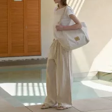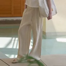 The minimalist solid-color design and loose, straight-leg cut create a clean, timeless silhouette that suits every wardrobe. A mid-rise waist with an adjustable drawstring makes the fit both flattering and flexible, while the addition of practical side pockets brings ease and functionality to your daily dressing routine. Perfect for everything from morning errands to beach strolls or casual brunch dates, these trousers embody laid-back luxury with a polished touch.