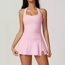 Elevate your workout routine with this stylish and functional 2-piece yoga set designed for women who love to move with confidence. Whether you’re flowing through a yoga class, crushing a gym session, or simply enjoying activewear that looks as good as it feels, this set has you covered. Featuring a sleek short-sleeved crop top and matching high-waist skirt, it’s the perfect fusion of comfort, support, and contemporary style.