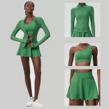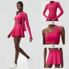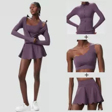 • 3-Piece Set: Includes a supportive top, a long-sleeve outer layer, and a skirt with built-in shorts.