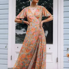 Step into the sunshine with this stunning boho floral wrap maxi dress – a dreamy blend of free-spirited style and relaxed elegance. Designed to turn heads wherever your summer takes you, this ankle-length beauty is the perfect choice for beach holidays, laid-back weekends, music festivals, or sunset dinners by the shore. Its flowing A-line silhouette flatters every figure, while the high waist and wrap design create a naturally feminine shape. Whether you’re strolling barefoot on the sand or pairing it with strappy sandals, this dress captures the carefree essence of summer living.