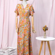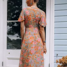 The soft cotton-polyester fabric is breathable and light, making it ideal for warm weather. The vintage floral print adds a romantic touch, and the deep V-neck and butterfly sleeves elevate the look with just the right hint of allure. A matching belt at the waist allows you to customize the fit and accentuate your curves without compromising comfort.