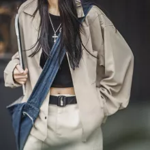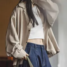 Crafted from a high-quality blend of polyester and nylon, this blouse is lightweight yet durable, making it ideal for year-round wear. The smooth peach skin texture adds a touch of luxury, while the relaxed oversized fit ensures all-day comfort. The breathable fabric makes it suitable for any season, whether you’re layering it in cooler months or wearing it as a light top during warmer days.
