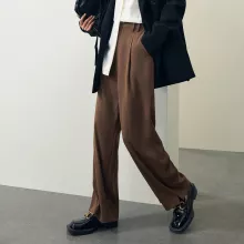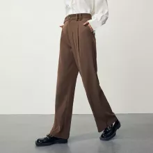 Crafted from a premium blend of polyester and spandex, these trousers provide just the right amount of stretch for all-day comfort. The pleated front style adds a touch of formality, while the wide-leg cut ensures a relaxed and airy feel. The addition of side slits offers a contemporary twist, making these trousers a versatile piece for both casual and semi-formal occasions.