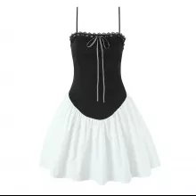 Step into the spotlight with this stunning Black and White Patchwork Spaghetti Strap Mini Dress. Designed to hug your curves in all the right places, this dress brings together bold contrast and sleek minimalism for an ultra-modern look. Perfect for warm weather, summer nights out, or daytime events, this slim A-line dress is made to flatter and designed to impress.