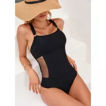 Make a bold statement on the beach or by the pool with this Black Mesh One Piece Swimsuit. Designed for the confident woman who craves both elegance and edge, this monokini is the perfect fusion of athletic styling and sultry details. The sleek black silhouette is elevated by sheer mesh splicing that teases just enough skin while keeping things sophisticated. Whether you’re soaking up the sun or diving into adventure, this high-waist swimsuit delivers the support and comfort you need to feel your best.