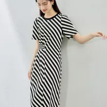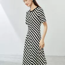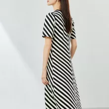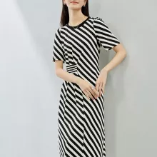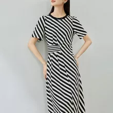 Step into summer with this chic black and white striped midi dress, designed for timeless elegance and all-day comfort. With its classic round neckline, short sleeves, and flattering A-line silhouette, this dress is a perfect blend of sophistication and ease. The eye-catching striped patchwork design adds a modern touch, making it a standout piece in your wardrobe. Whether you’re heading to brunch, running errands, or enjoying a casual evening out, this dress keeps you looking stylish and feeling comfortable.