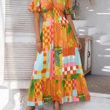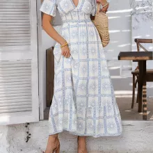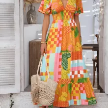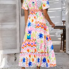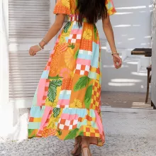 Step into summer with confidence and grace in Bohemian V-Neck High Waist Maxi Dress. Designed for women who crave effortless style and carefree elegance, this ankle-length dress is the ultimate choice for holiday getaways, beach strolls, weekend markets, and sunset dinners. With its flowing silhouette, eye-catching contrast color design, and flattering V-neckline, this dress combines classic boho charm with modern simplicity. Whether you’re walking barefoot on the sand or dancing under the stars, you’ll look and feel unforgettable.