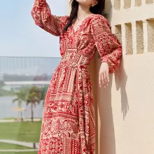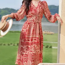 Step into effortless elegance with this stunning Boho Chiffon Midi Dress, designed to bring out your free-spirited charm. Featuring a flattering V-neckline, delicate lantern sleeves, and a beautifully flowing A-line silhouette, this dress is perfect for any occasion. The lightweight chiffon fabric drapes gracefully, offering comfort and movement, making it a must-have for your spring wardrobe.