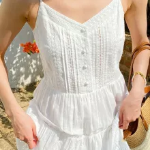 Whether you’re walking barefoot in the sand, sipping cocktails by the sea, or enjoying a picnic in the park, this dress offers the ideal balance of ease and elegance. With its soft cotton-blend fabric and breathable non-woven weave, it feels gentle on the skin, keeping you cool even on the hottest days.
