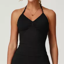 Crafted with a high-quality blend of 78% nylon and 22% spandex, this sports bra hugs your body with a soft, breathable feel while offering the durability and stretch you need for intense workouts. The halter design adds a touch of elegance and sexiness, while the padded support enhances your natural shape and keeps you secure through every movement.