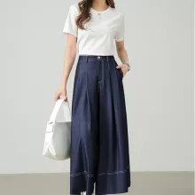 If you’re looking for a fashionable piece that offers both comfort and style, these cropped wide-leg trousers are the perfect pick. The non-stretch fabric and pleated front design ensure a structured yet comfortable fit, while the bright line decoration adds a pop of personality. Step out confidently, knowing you look as good as you feel.