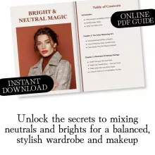 Are you ready to elevate your wardrobe and style game? Unlock the secret to effortlessly combining neutrals and brights with our expertly crafted guide, Bright & Neutral Magic. Whether you’re a seasoned fashionista or someone just looking to break out of your color comfort zone, this guide will transform the way you dress, make up, and accessorize. Say goodbye to color confusion and hello to stylish, balanced looks that work for every occasion.