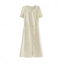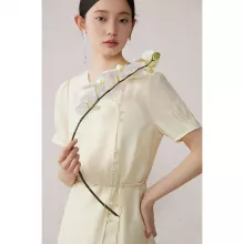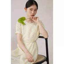 The craftsmanship of this garment is evident in its detailed weaving and design. Made with TAT weaving craft, the fabric is durable yet soft against the skin. Non-stretch fabric ensures the dress retains its shape, offering a consistently flattering fit.