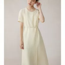 The craftsmanship of this garment is evident in its detailed weaving and design. Made with TAT weaving craft, the fabric is durable yet soft against the skin. Non-stretch fabric ensures the dress retains its shape, offering a consistently flattering fit.
