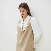 Indulge in the timeless charm of our French Chic V-neck Ribbon Dress. Crafted with care and style, this dress embodies sophistication and comfort, making it a must-have in your wardrobe.