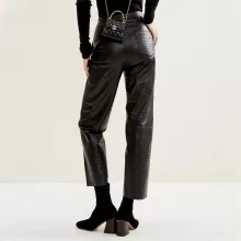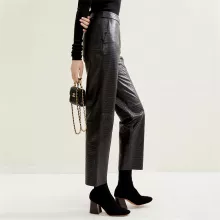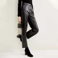 Chic Genuine Sheepskin Leather Pants with Embossed Design