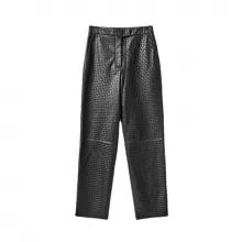 Chic Genuine Sheepskin Leather Pants with Embossed Design