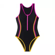 Unlike basic swimsuits, this piece combines bold color contrast, functional design, and high-quality stretch fabric for a look that’s equal parts performance and fashion. The front zipper adds a sporty edge and a touch of flirtation, making it a standout option for the modern woman who does it all—and wants to look good doing it.