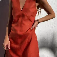 Slip into sunshine-ready elegance with this Cotton Linen V-Neck Sleeveless Mini Dress – your go-to outfit for those warm, carefree days. Designed to combine comfort and effortless chic, this dress features a flattering A-line silhouette and a breezy woven texture that feels as light as air. Whether you’re heading to brunch with friends, exploring a beachside town, or simply enjoying a summer stroll, this dress is your perfect companion. Made from a high-quality blend of 55% linen and 45% cotton, it keeps you cool and comfortable, even on the hottest days.