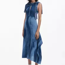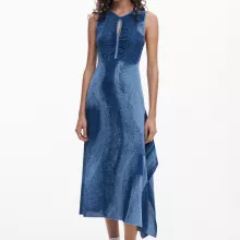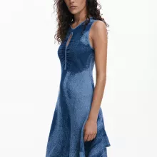 This sleeveless dress by Desigual features a classic round neckline and a solid blue color that brings freshness to your wardrobe. The clean, minimalist look flatters every silhouette and allows for endless styling possibilities. It’s a staple that doesn’t try too hard yet always stands out for the right reasons. And thanks to its machine-washable fabric, it’s just as easy to care for as it is to wear.