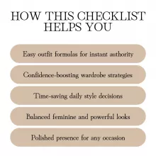 - Style Strategy Cheatsheet—ready-to-use outfit formulas for quick, powerful looks