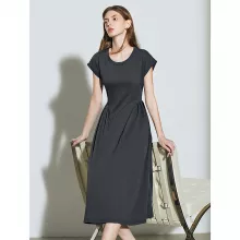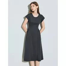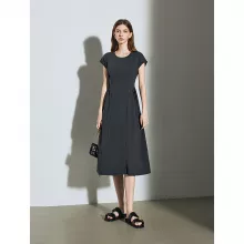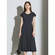 Crafted from high-quality polyester, this dress offers a soft, breathable feel with a slight stretch for comfort. The regular fit ensures ease of movement, while the short sleeves and knee-length cut strike the perfect balance between style and sophistication. The subtle fold decoration adds a refined touch, making it ideal for both daytime and evening occasions.