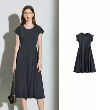 Step into effortless sophistication with this elegant A-line knee-length dress, designed to flatter your figure and elevate your style. Featuring a classic round neckline, a high waist for a slimming effect, and a gracefully flowing silhouette, this dress is a must-have for your wardrobe. Whether you’re heading to a cocktail party, a work event, or a dinner date, this dress ensures you look polished and confident.