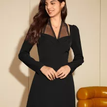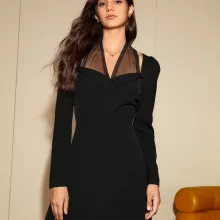 Discover the perfect blend of sophistication and modern charm with this Elegant Black Long-Sleeved French Dress with Mesh Splicing. Designed to exude high-end refinement, this A-line silhouette dress is ideal for women who want to stand out with a sleek yet timeless look. Perfect for the office or upscale gatherings, this dress is a wardrobe essential for autumn 2024.