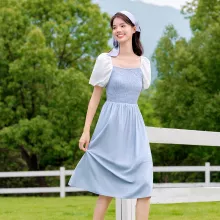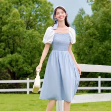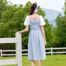 Step into effortless sophistication with this Elegant Color-Block Puff Sleeve Dress. Designed with a retro Hepburn-style silhouette, this dress perfectly blends vintage charm with contemporary grace. The striking color-block design enhances its elegance, while the square neckline and puff sleeves add a touch of romance. Whether you’re attending a special event or simply want to elevate your everyday style, this dress is your go-to choice for timeless beauty.