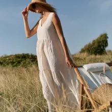 Step into summer with grace and ease in this 100% cotton V-neck sleeveless dress, designed for women who love feeling both relaxed and refined. With a breezy silhouette and flattering cut, this mid-calf dress is your new favorite for everything from beach walks to sunset dinners. Whether you’re on vacation, heading to the market, or enjoying brunch with friends, this dress delivers understated style that turns heads with its simplicity.