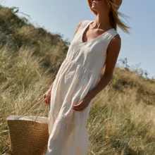 Step into summer with grace and ease in this 100% cotton V-neck sleeveless dress, designed for women who love feeling both relaxed and refined. With a breezy silhouette and flattering cut, this mid-calf dress is your new favorite for everything from beach walks to sunset dinners. Whether you’re on vacation, heading to the market, or enjoying brunch with friends, this dress delivers understated style that turns heads with its simplicity.