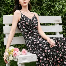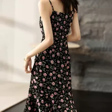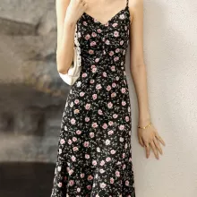 Step into effortless style with this beautifully designed floral spaghetti strap midi dress. Perfectly crafted to accentuate your figure, this dress features a flattering V-neckline that enhances your natural beauty. The sleeveless, backless design adds a playful yet sophisticated touch, making it the ideal choice for both casual outings and special occasions.