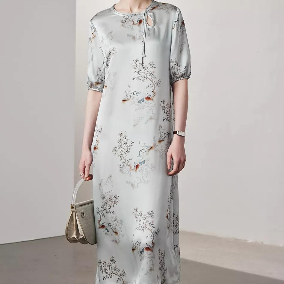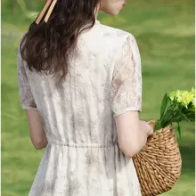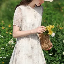 Whether you’re heading to a garden brunch, an art exhibition, or a casual summer gathering, this dress will keep you cool and chic. Its mid-calf length and flowy structure make it ideal for warm-weather occasions, offering both coverage and comfort. The single-breasted front adds a subtle vintage touch, while the short sleeves and refined neckline highlight your natural elegance. With its unique edible tree fungus decoration, this piece adds a dash of artistry that sets it apart from ordinary summer dresses.