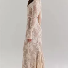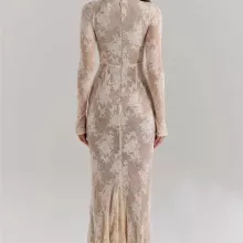 Turn heads wherever you go with this stunning lace print long sleeve maxi dress. Designed to enhance your natural silhouette, this bodycon dress exudes sophistication and elegance, making it a perfect choice for both formal occasions and special nights out. The soft white fabric combined with delicate lace detailing and a half-high collar creates a timeless and chic look that radiates confidence and style.