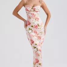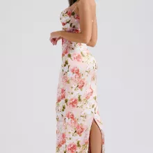 This dress is the perfect choice for anyone looking to add a touch of elegance to their summer wardrobe. Its soft satin fabric and eye-catching pink peony print make it ideal for special occasions like weddings, garden parties, or evening events. The dress is designed to be timeless and versatile, easily transitioning from day to night with a quick change of accessories. The empire waist and V-neckline ensure you look stunning at all times, while the breathable fabric keeps you comfortable during those hot summer months.