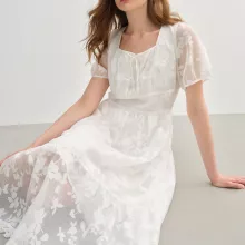- Elegant Design: French square neckline and puff sleeves offer a touch of vintage charm