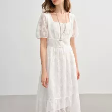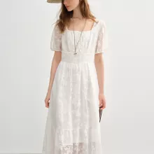 Step into summer with grace and charm in this elegant white burnout dress, designed specifically with plus-size women in mind. Crafted from a breathable blend of rayon and polyester, this mid-calf beauty features a French-inspired square neckline and sweet puff sleeves that add a romantic, vintage touch. With its flowing A-line silhouette and soft floral pattern, this dress is the perfect fusion of comfort and style—ideal for garden parties, brunch dates, summer weddings, or simply embracing everyday elegance.