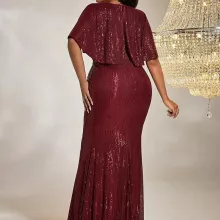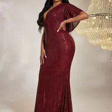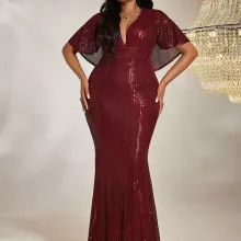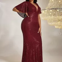 Step into the spotlight with this Elegant Plus-Size V-Neck Evening Dress. Designed to flatter your figure and enhance your confidence, this floor-length dress features a timeless silhouette and subtle sequins that add just the right amount of sparkle. Perfect for formal events, evening parties, or special celebrations, this dress effortlessly combines sophistication and comfort, making it a must-have addition to your wardrobe.
