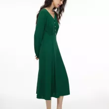 Unlike standard office wear, this sleek yet comfortable design combines a professional look with the ease of casual wear. The stunning solid green color adds a fresh and elegant touch, while the flowy A-line silhouette ensures comfort and grace with every step. It’s the perfect balance of style and practicality, making it a must-have in your wardrobe.