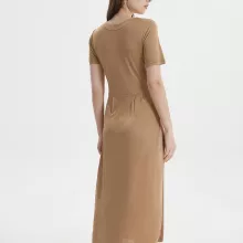 Step into sophistication with this stunning silk-blend knitted dress, designed to complement your natural grace. Crafted with a luxurious mix of 30% mulberry silk and 70% viscose, this dress offers a soft, breathable feel with just the right amount of stretch for a comfortable yet figure-flattering fit. Whether you’re heading to brunch, a garden party, or a special evening out, this dress ensures you make an effortlessly chic statement.