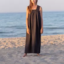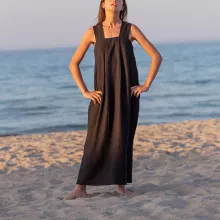 Featuring a classic square collar and a flowing A-line silhouette, this dress flatters every figure. The spaghetti straps add a touch of delicacy, while the woven cotton-linen fabric offers both comfort and durability. Solid in color but rich in texture, it exudes simplicity and elegance. The thoughtful addition of pockets blends functionality with fashion, keeping your essentials close without compromising on style.