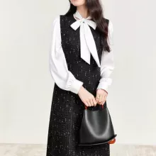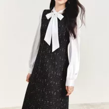 This dress is the perfect addition to your wardrobe for any season. Its tweed material provides warmth during autumn and winter while remaining breathable for indoor settings. Whether you’re heading to a corporate event, an elegant dinner, or a special occasion, this dress ensures you stand out in style.