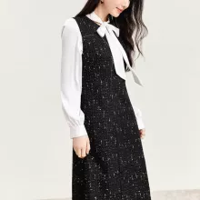 This dress is the perfect addition to your wardrobe for any season. Its tweed material provides warmth during autumn and winter while remaining breathable for indoor settings. Whether you’re heading to a corporate event, an elegant dinner, or a special occasion, this dress ensures you stand out in style.
