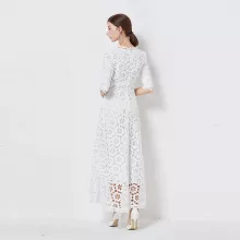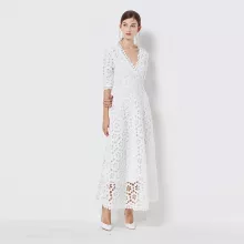 Step into the room with confidence and grace in our Elegant V-Neck Lace Maxi Dress. Perfect for evening parties or any special occasion, this dress combines a sophisticated silhouette with a touch of high-street fashion. Designed for women who cherish both style and comfort, this white lace dress is a timeless addition to your wardrobe.