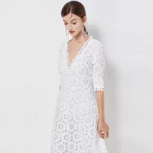 Step into the room with confidence and grace in our Elegant V-Neck Lace Maxi Dress. Perfect for evening parties or any special occasion, this dress combines a sophisticated silhouette with a touch of high-street fashion. Designed for women who cherish both style and comfort, this white lace dress is a timeless addition to your wardrobe.