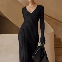 Elevate your wardrobe this season with the Elegant V-Neck Lace-Up Knitted Sweater Dress. Designed to combine style and comfort, this chic ankle-length dress is a perfect blend of modern fashion and timeless sophistication. Its lace-up detail adds a touch of allure, while the soft knitted fabric ensures a cozy and comfortable fit. Whether you’re attending a casual outing, a dinner date, or a relaxed evening event, this dress adapts effortlessly to your needs, making it a must-have for autumn and winter.