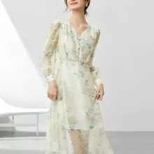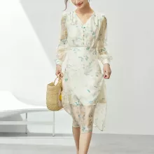 Step into timeless sophistication with this stunning V-neck print dress, designed for women who appreciate elegance with a touch of vintage charm. Featuring a flattering A-line silhouette and delicate button accents, this dress is perfect for work, special occasions, or an elegant day out. The beautiful printed design adds a fresh spring vibe, making it an essential addition to your wardrobe.