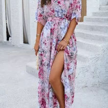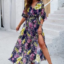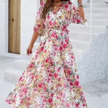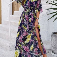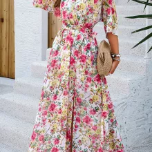 Step into the new season with confidence and style with our Elegant V-Neck Printed Dress, perfect for Spring and Summer. This exquisite ankle-length dress is designed to enhance your wardrobe with its eye-catching prints and flattering silhouette. Whether you’re strolling through city streets or attending a casual gathering, this dress ensures you look effortlessly chic.
