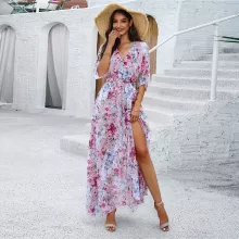 Step into the new season with confidence and style with our Elegant V-Neck Printed Dress, perfect for Spring and Summer. This exquisite ankle-length dress is designed to enhance your wardrobe with its eye-catching prints and flattering silhouette. Whether you’re strolling through city streets or attending a casual gathering, this dress ensures you look effortlessly chic.